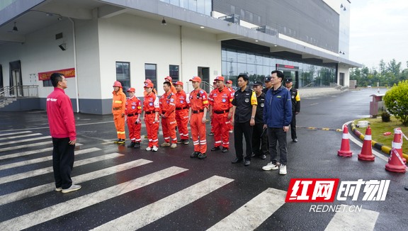 寧鄉(xiāng)經(jīng)開區(qū)農(nóng)科園相關(guān)負(fù)責(zé)人在美宜佳產(chǎn)業(yè)園組織進(jìn)行消防演練。